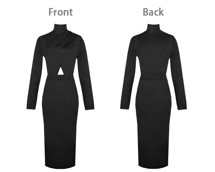 Celebrity Long Sleeve Sexy Bandage Bodycon Party Cocktail Pencil Club Midi Dress, 1 Piece with cut out and runched front details, color black, red available.